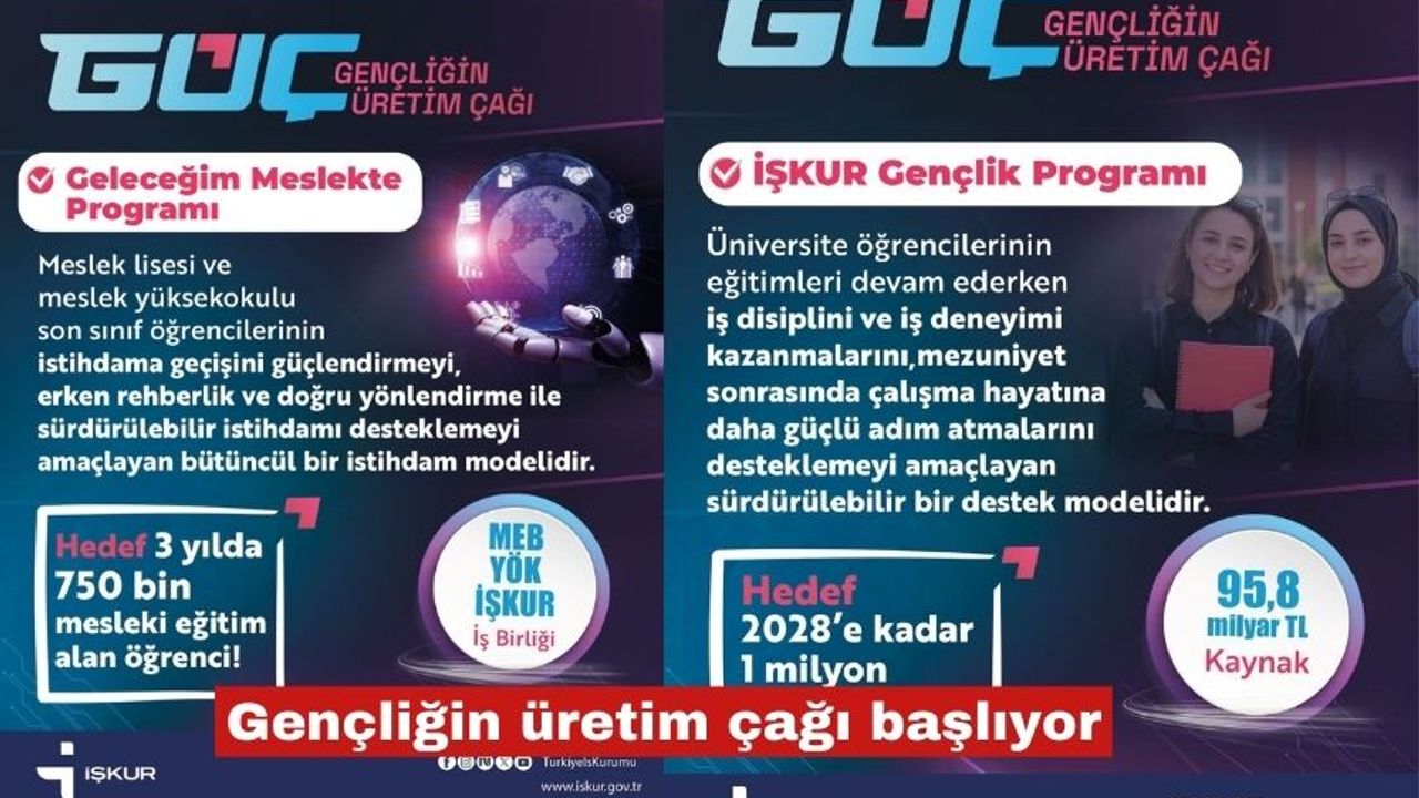 Türkiye Yüzyılı vizyonu doğrultusunda başlatılan "Ulusal Staj Programı" ve "GÜÇ – Gençliğin Üretim Çağı Programı" ile gençler, eğitim süreçlerinden kopmadan iş dünyasıyla erkenden tanışma fırsatı yakalayacak.