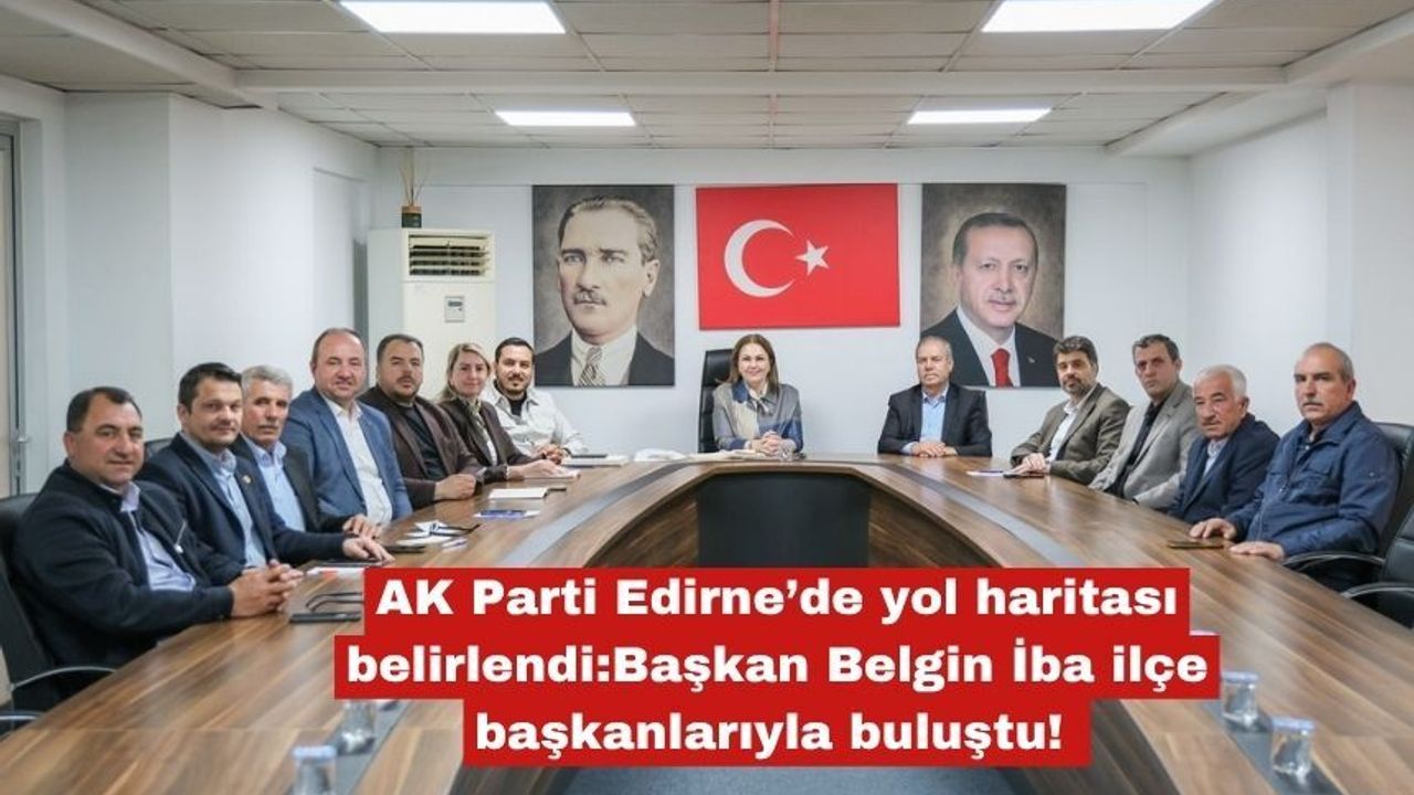 AK Parti Edirne İl Başkanı Belgin İba, ilçe başkanlarıyla bir araya gelerek teşkilatın saha performansını ve gelecek dönem stratejilerini değerlendirdi. Toplantıda, Edirne genelinde yürütülen hizmetlerin koordinasyonu ve vatandaş odaklı siyaset vurgusu yapıldı.
