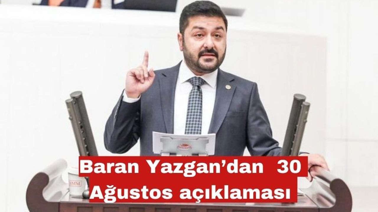 CHP Edirne Milletvekili Ahmet Baran Yazgan, 30 Ağustos Zafer Bayramı’nın 103. yılı nedeniyle yazılı açıklama yaptı. Yazgan, açıklamasında şunları kaydetti: