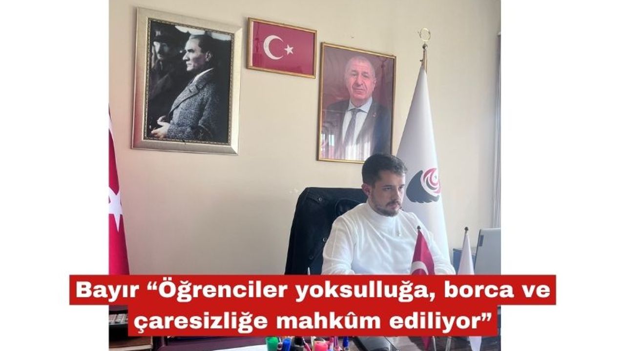 Bayır, Hükümetin Suriyelilere gösterdiği hassasiyeti ne yazık ki kendi evlatlarına, kendi öğrencilerine göstermemediğine vurgu yaparak, “Kamuoyuna büyük bir başarıymış gibi sunulan zamlarla KYK burs ve kredisi 4.000 TL’ye çıkarılmıştır; ancak bu rakam, öğrencilerin gerçek yaşam koşullarıyla karşılaştırıldığında açıkça bir aldatmacadan ibarettir. Kâğıt üzerinde yapılan bu sözde artışlar, gençlerin yaşadığı yoksulluğu gizlemeye yetmemektedir.”