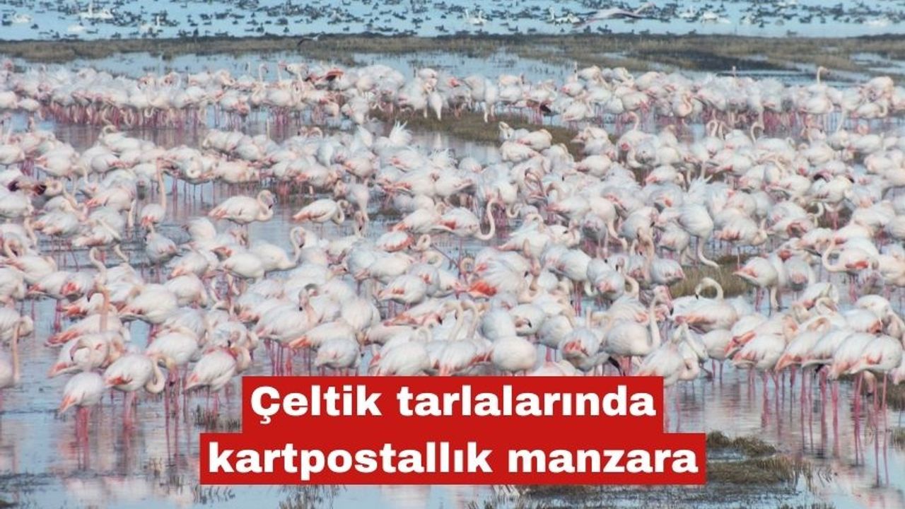Su birikintileri içinde yiyecek arayan flamingolar, kuğular ve çok sayıda göçmen kuş türü, çeltik tarlalarını adeta bir kuş cennetine dönüştürdü. Ortaya çıkan manzara, bölgenin doğal güzelliğini bir kez daha gözler önüne serdi.