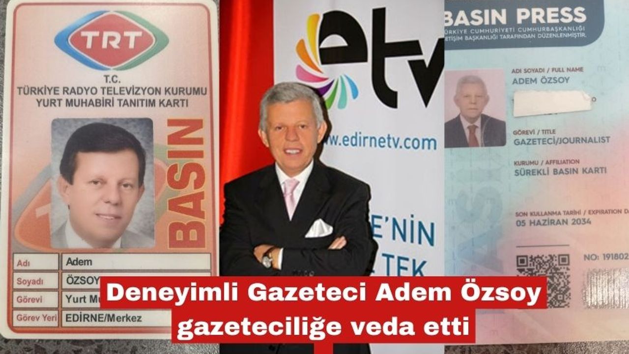 Edirne basın camiasının deneyimli isimlerinden Adem Özsoy, 1974 yılında hobi olarak başladığı ve yaklaşık 50 yıldır sürdürdüğü gazetecilik serüvenini sonlandırdığını açıkladı.