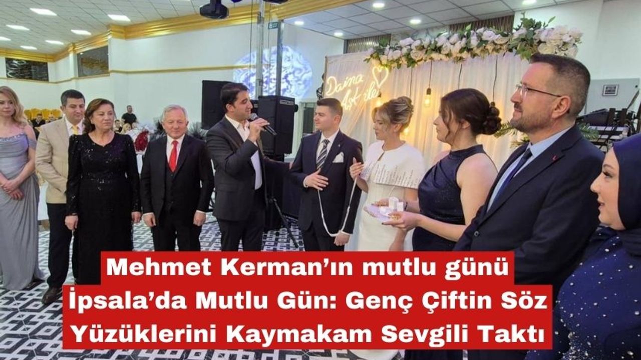 Erman Kerman ve Dilara çiftinin evlilik yolunda attığı ilk adımda, ailelerin mutluluğuna İpsala Kaymakamı Ömer Sevgili ortak oldu. Kaymakam Sevgili, genç çiftin söz yüzüklerini takarak hayırlı olsun temennisinde bulundu.