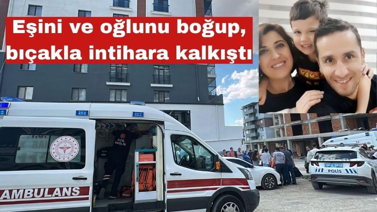 Edirne'de Ömer Gökhan Alacı. (41), tartıştığı eşi Didem Örs Alacı (38) ile oğulları Doruk Kaan Alacı'yı (9) boğup, bıçakla intihara kalkıştı.