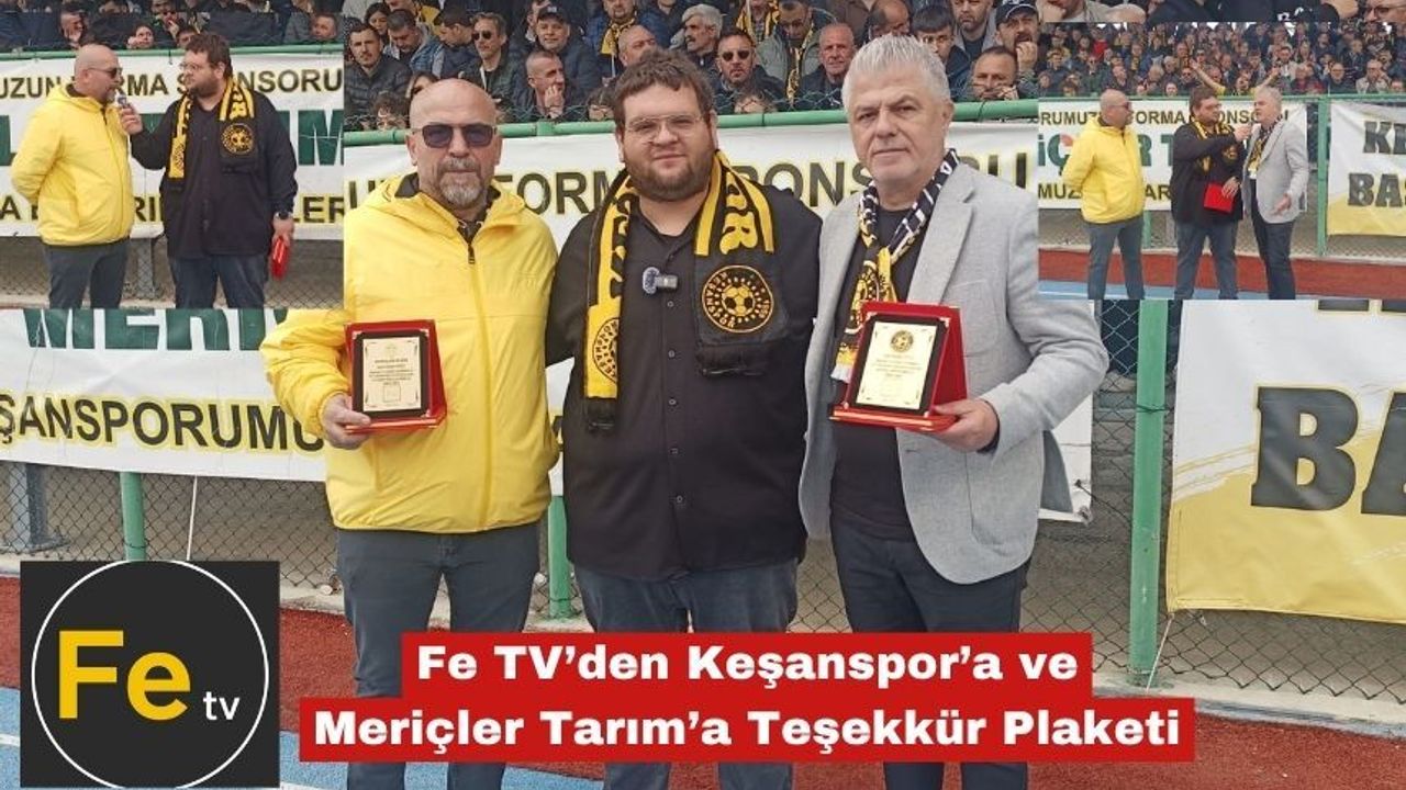 Edirne’nin Keşan ilçesinde faaliyet gösteren dijital yayın platformu Fe TV, 2025-2026 futbol sezonu boyunca sağlanan desteklerden dolayı Keşanspor Kulüp Başkanı Mehmet Yavaş ve Meriçler Tarım’ın sahibi Mehmet Meriç’e teşekkür plaketi takdim etti.