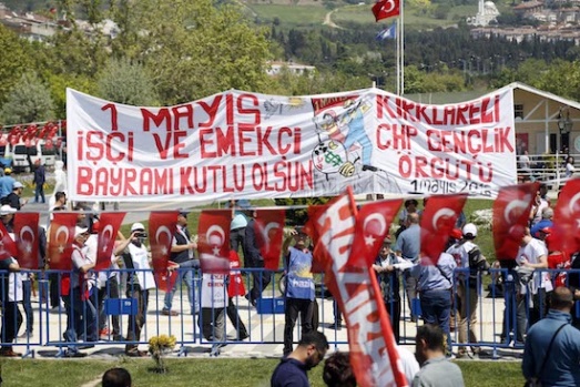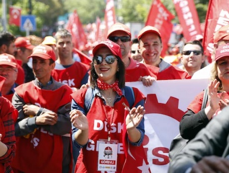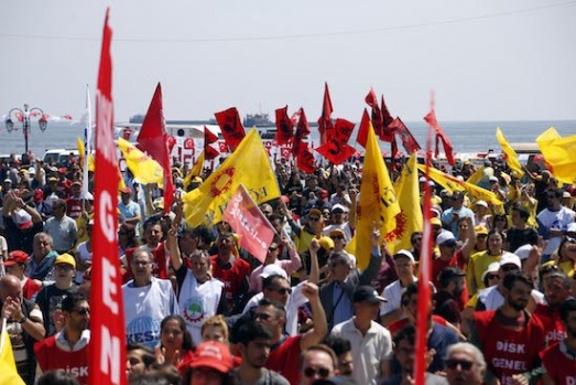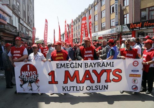 Tekirdağ'da 1 Mayıs Emek ve Dayanışma Günü dolayısıyla yürüyüş gerçekleştirildi. DİSK, KESK, EĞİTİM-SEN üyeleri ve işçilerden oluşan grup sahil dolgu alanına kadar yürüdü. A.A.