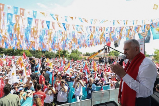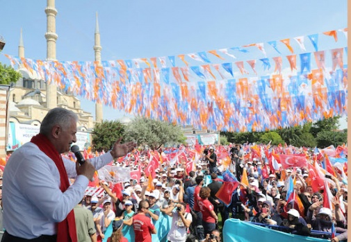 AK Parti Genel Başkanvekili ve Başbakan Binali Yıldırım, partisince Selimiye Meydanı'nda düzenlenen mitinge katılmak üzere Edirne'ye geldi. A.A.