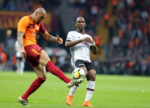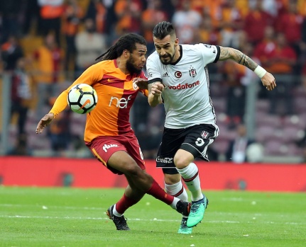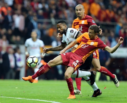Spor Toto Süper Lig'de Galatasaray ile Beşiktaş takımları, Türk Telekom Stadı'nda karşılaştı. Bir pozisyonda Galatasaraylı futbolcu Maicon Roque (solda) ile Beşiktaşlı futbolcu Ryan Babel mücadele etti. A.A.