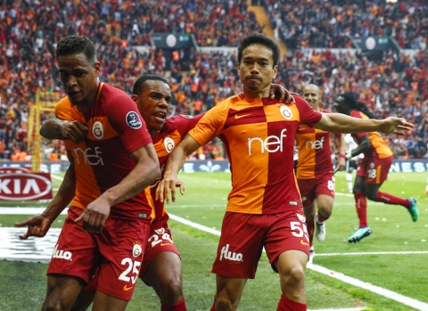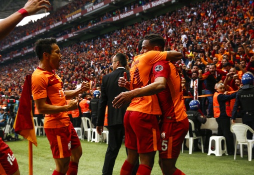 Spor Toto Süper Lig’de Galatasaray ile Beşiktaş Türk Telekom Stadı’nda karşılaştı. Galatasaray’ın golünü atan Fernando Reges (25), sevinç yaşarken gol sevincini takım arkadaşlarıyla paylaştı. A.A.
