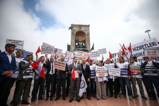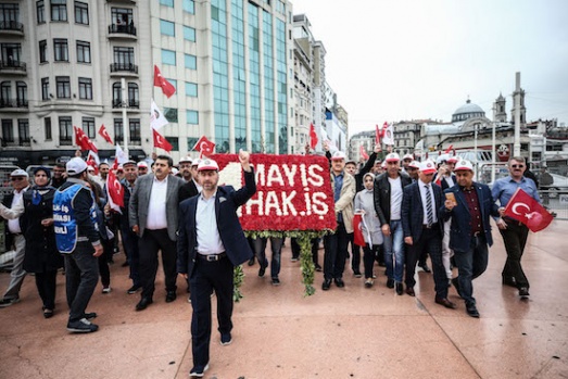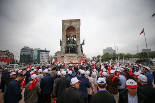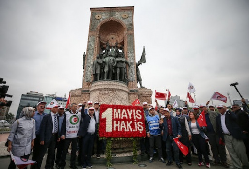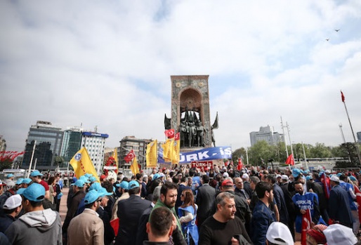 1 Mayıs Emek ve Dayanışma Günü kutlamaları dolayısıyla Türkiye İşçi Sendikaları Konfederasyonu (TÜRK-İŞ) üyesi bir grup Taksim Meydanı'na gelerek açıklama yaptı. A.A.