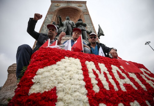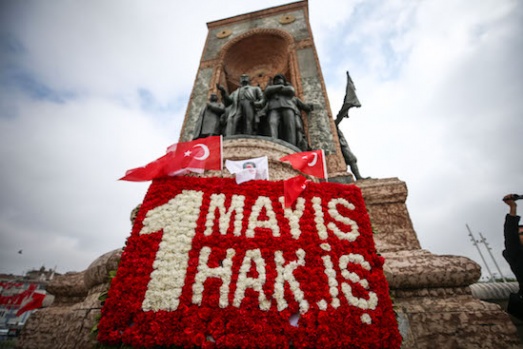 Hak-İş İstanbul İl Başkanlığı, 1 Mayıs Emek ve Dayanışma Günü dolayısıyla Kazancı Yokuşu'na karanfil, Taksim Cumhuriyet Anıtı'na ise çelenk bıraktı. A.A.
