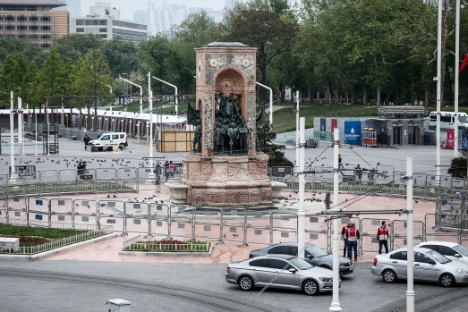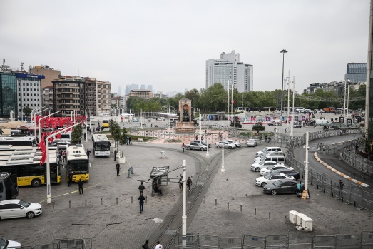 1 Mayıs Emek ve Dayanışma Günü kutlamaları dolayısıyla Taksim Meydanı araç girişlerine kapatıldı. A.A.