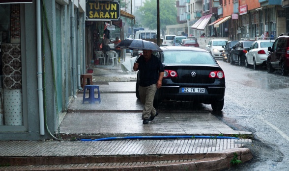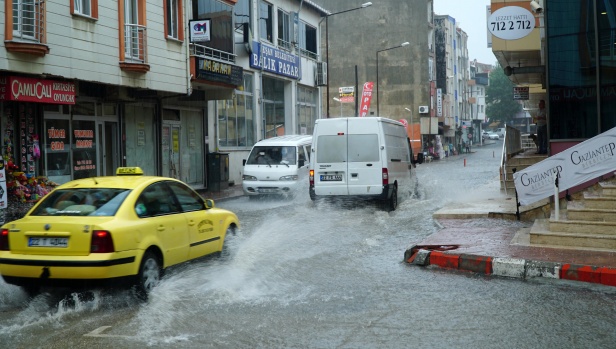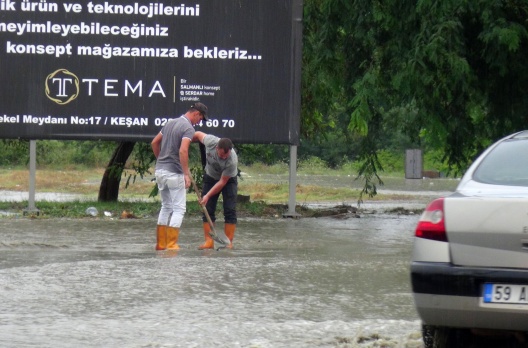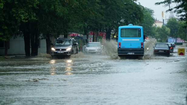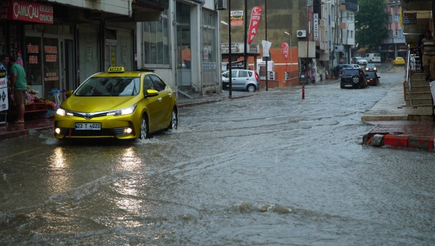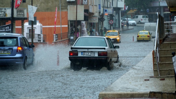 Keşan’da öğle saatlerinde başlayan sağanak, hayatı olumsuz etkiledi. DHA