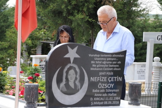 Mardin'in Midyat ilçesindeki terör saldırısında 2 yıl önce şehit olan polis memuru Nefize Çetin Özsoy'un ailesi, Ramazan Bayramı'na buruk girdi. Edirne Yenişehir Mezarlığı'na gelen baba Süleyman ve anne Hafize Çetin, şehit kızlarının kabrini temizledi ve dua etti. A.A.