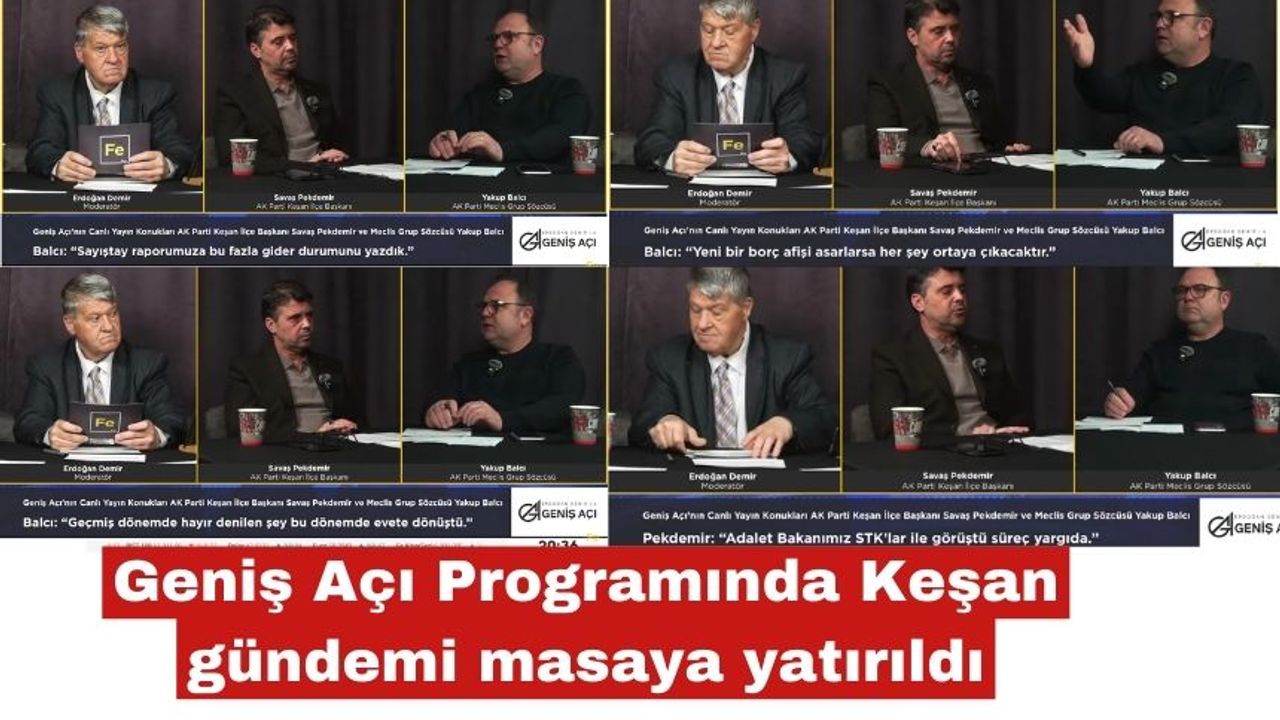Fe TV’de yayınlanan ve Erdoğan Demir tarafından sunulan Geniş Açı programında AK Parti Keşan İlçe Başkanı Savaş Pekdemir ile AK Parti Keşan Belediye Meclis Grup Sözcüsü Yakup Balcı, Keşan’daki sağlık yatırımları, belediye çalışmaları ve meclis gündemine dair değerlendirmelerde bulundu.