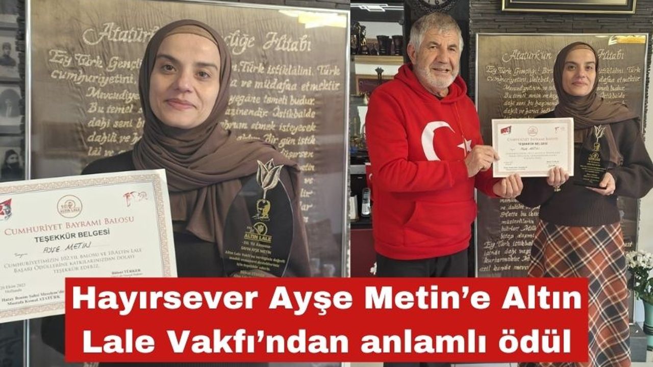 Altın Lale Vakfı Başkanı Bülent Türker ise yaptığı konuşmada, deprem bölgelerine ve dünyadaki çocuklara katkı sunan kişi ve kuruluşları ödüllendirmeye devam edeceklerini belirtti. Türker, “Bu insanlar toplumların yüz akıdır. Dünyada sevmekten sonra en güzel ve en anlamlı şey, iyiliğin peşinden koşmaktır” sözleriyle Ayşe Metin’in çalışmalarının taşıdığı değeri vurguladı.