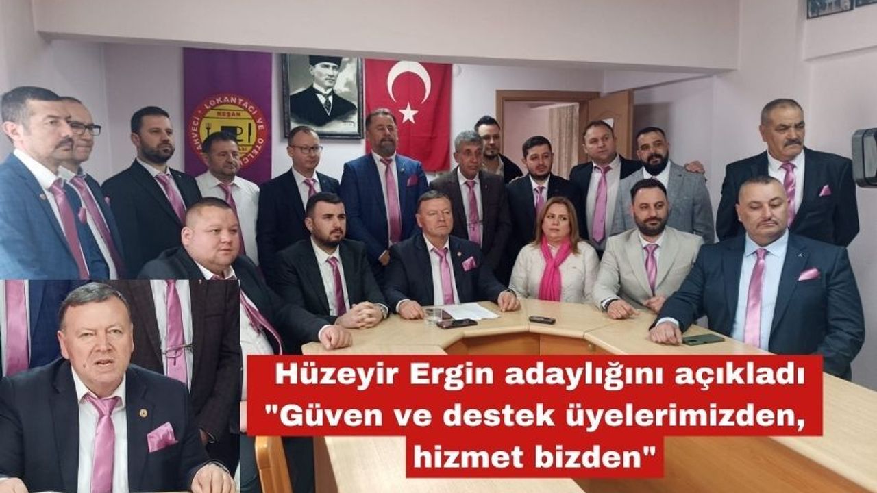 Keşan Lokantacı Kahvceci ve Otelciler Odası’nda seçim heyecanı tüm hızıyla devam ediyor. Mevcut başkan Hüseyin Çakmak’ın 26 yıllık görevinin ardından aday olmayacağını açıklamasının ardından, yönetim kurulunda "başkan vekili" olarak görev yapan Hüzeyir Ergin, dün düzenlediği basın toplantısıyla adaylığını resmen duyurdu.