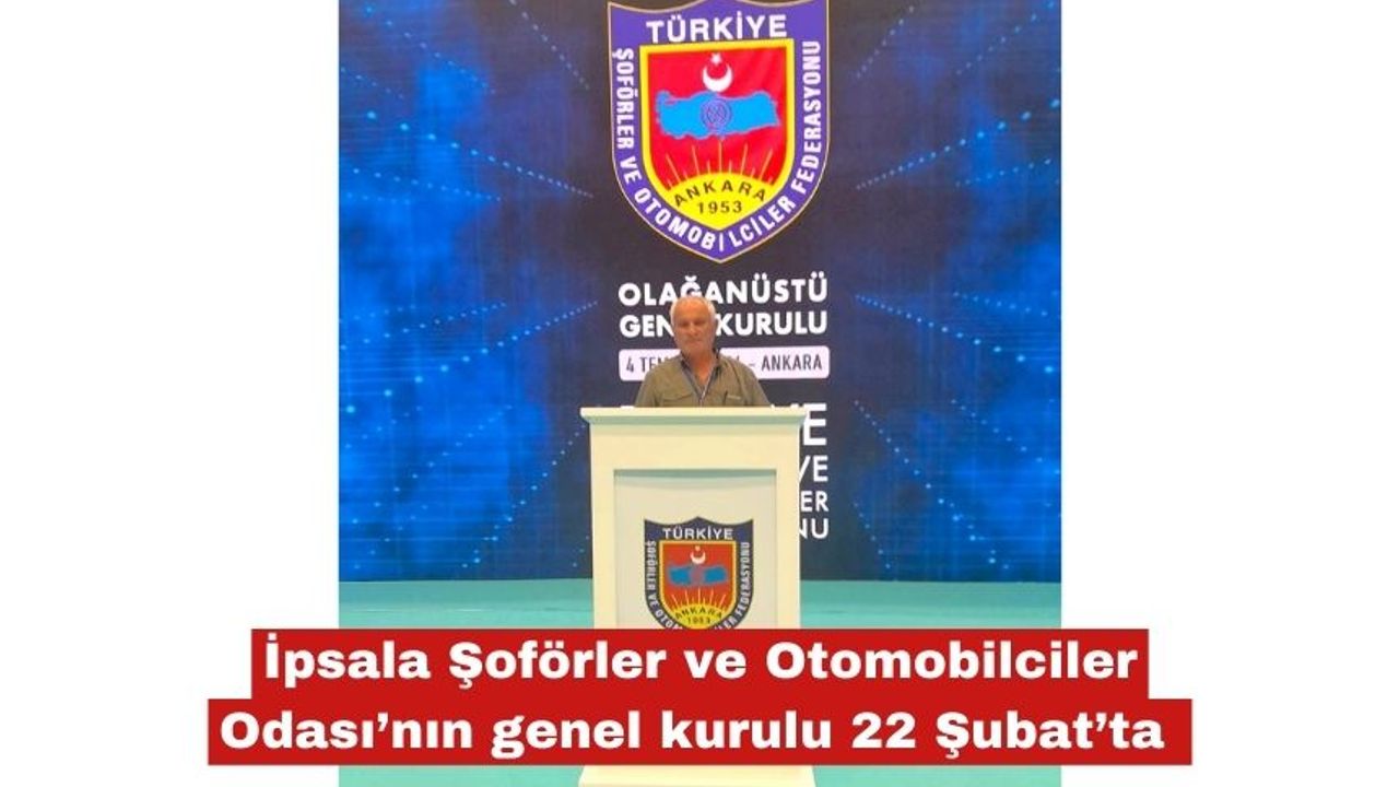 İpsala Şoförler ve Otomobilciler Esnaf Odası’nın 2026 yılı olağan genel kurul toplantısı, 22 Şubat 2026 Pazar günü yapılacağı açıklandı.