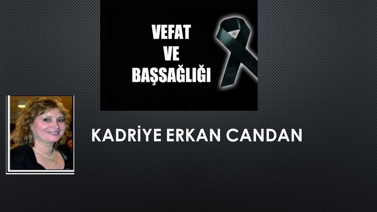 Keşan’a bağlı Şükrüköy halkından, merhum jandarma Ahmet ile merhume Şehriban Erkan’ın kızları, merhum Ali Erkan’ın kız kardeşi, Ramazan Erkan’ın ablası, İsmail Erkan ve Peri Erkan Akkaş’ın halaları, Mustafa Candan’ın eşi, Feymi ve Ugurdeniz’in anneleri olan KADRİYE ERKAN CANDAN vefat etti.