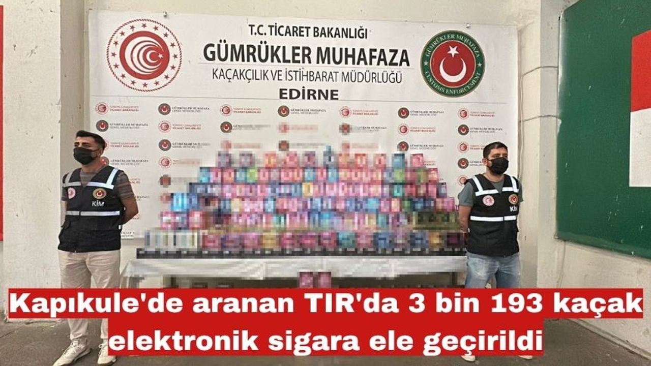Edirne'den Bulgaristan'a açılan Kapıkule Sınır Kapısı'nda aranan TIR'da 3 bin 193 kaçak elektronik sigara ele geçirildi. Türkiye'ye giriş yapmak üzere Kapıkule Sınır Kapısı'na gelen TIR, şüphe üzerine X-Ray taramasına sevk edildi.