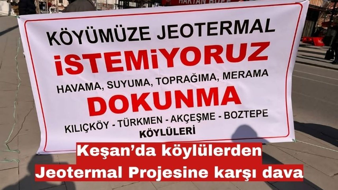 Keşan’da Boztepe, Türkmen, Kılıçköy ve Akçeşme köylüleri, jeotermal projesine verilen “ÇED gerekli değildir” kararının iptali için yarın Keşan Adliyesi önünde toplanarak dava açacaklarını duyurdu.