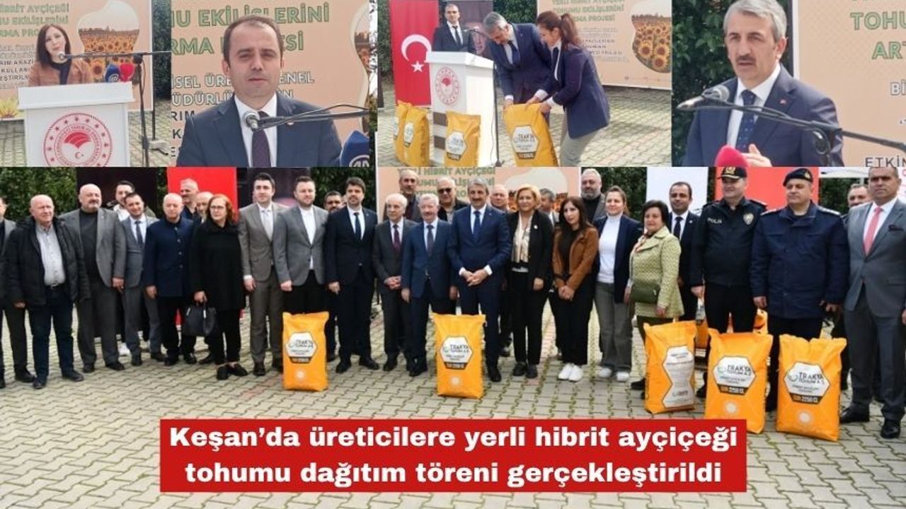 Yerli Hibrit Ayçiçeği Tohumu Ekilişlerini Arttırma Projesi Tohum Temini Töreni dün Keşan İlçe Tarım Müdürlüğü’nde gerçekleştirildi.