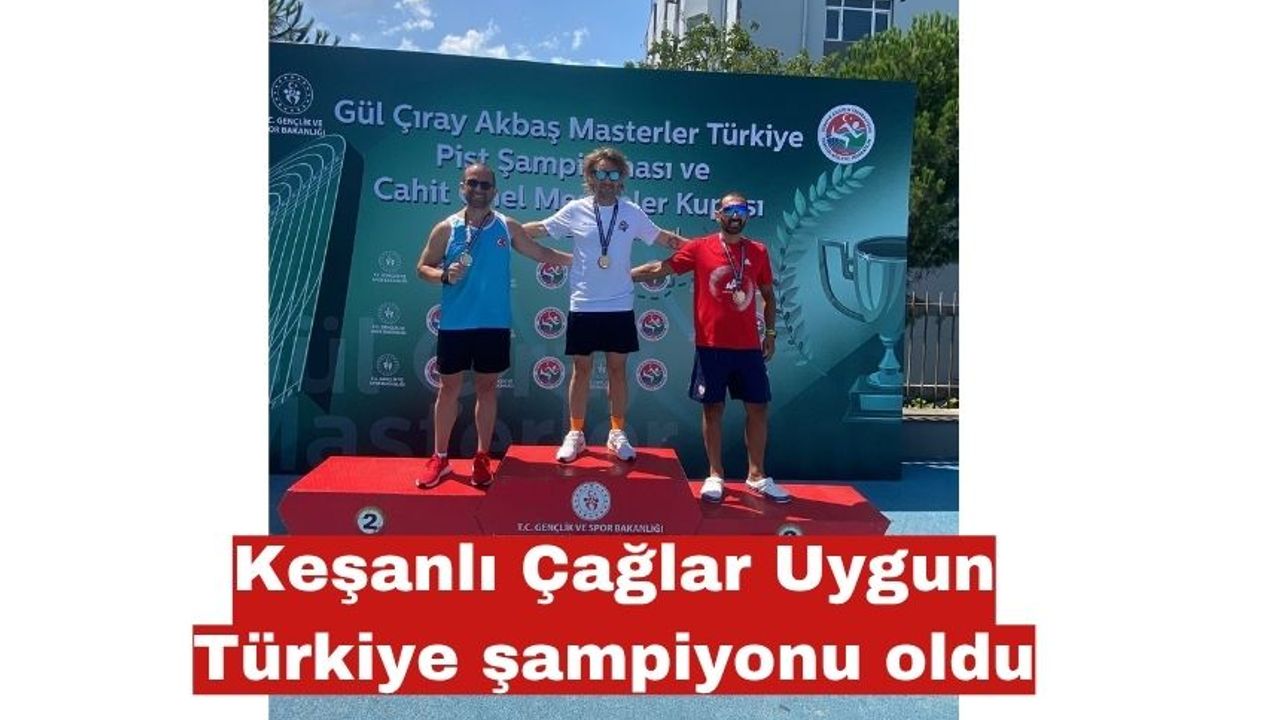 Keşanlı sporcu Çağlar Uygun, Türkiye Masterlar Şampiyonası’nda 3000 metre engelli branşında birinci olarak Türkiye şampiyonu unvanını kazandı.
