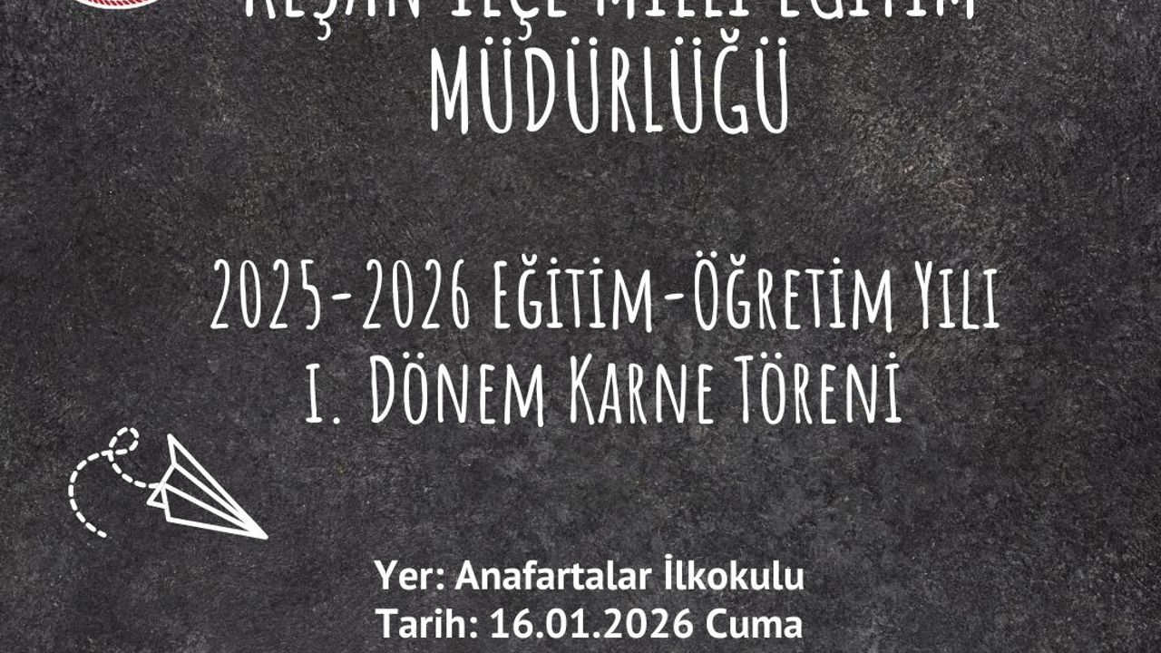 Keşan İlçe Milli Eğitim Müdürlüğü tarafından, 2025-2026 Eğitim Öğretim Yılı 1. Dönem Karne Töreni düzenlenecek.