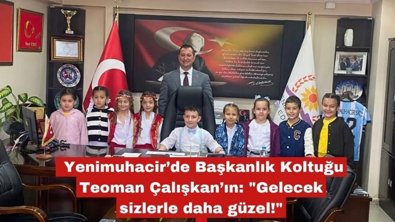 Yenimuhacir beldesinde 23 Nisan coşkusu, belediye başkanlığı makamında yaşanan anlamlı bir devir teslim töreniyle taçlandı. Geleceğin yöneticilerini şimdiden selamlayan törende, çocukların enerjisi ve vizyonu ön plana çıktı.