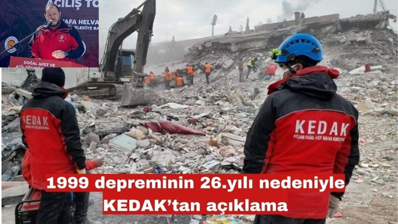 Keşan Doğal Afet Arama Kurtarma Derneği (KEDAK) Başkanı Gökhan Yumuşak tarafından 17 Ağustos 1999 depreminin 26.yılı nedeniyle yazılı bir açıklama yayınlandı.