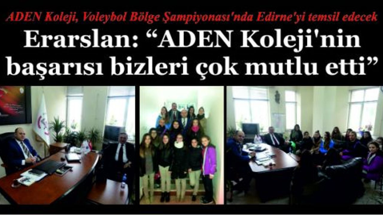 ADEN Koleji Genel Koordinatörü Ömer Alper Tunga Yaşar, Beden Eğitimi Öğretmeni Ayşe Kızılin ve voleybol takımı öğrencileri, 13 Şubat 2014 Cuma günü Keşan İlçe Milli Eğitim Müdürü İlker Erarslan’ı makamında ziyaret etti.