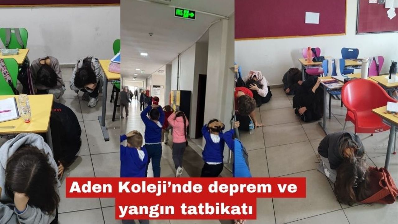Aden Koleji’nde gerçekleşen tatbikatta öğrenciler ders anında iken oluşan deprem nedeniyle ilk önce sınıf içerisinde gerekli önlemleri aldıktan sonra bulundukları sınıfları tahliye ederek okul dışarısına çıktılar.