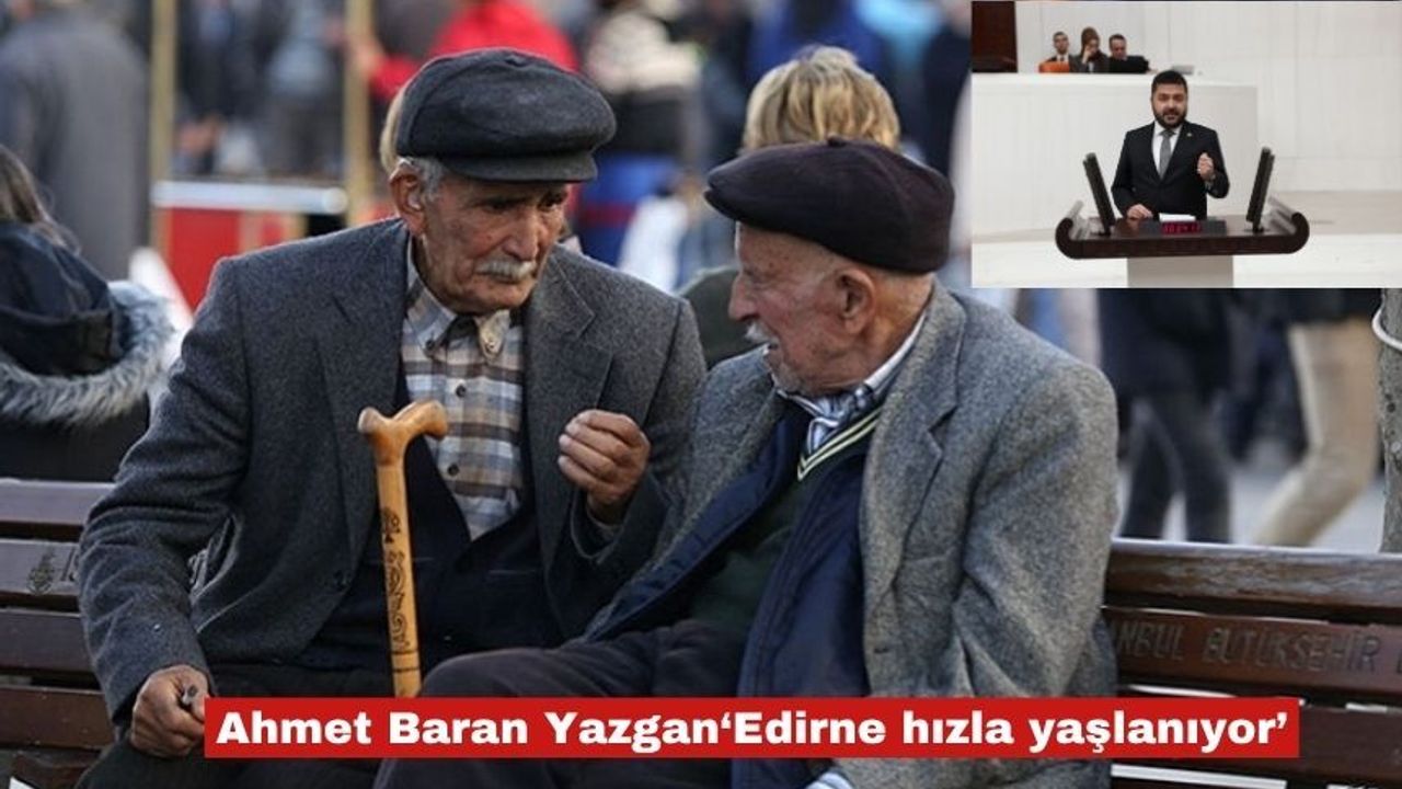 Cumhuriyet Halk Partisi (CHP) Edirne Milletvekili Ahmet Baran Yazgan, Edirne’nin çocuk nüfus açısından Türkiye genelinde sondan ikinci sırada yer aldığını ve çocuk nüfusun her yıl düştüğünü açıkladı. Yazgan, “Edirne’nin demografik yapısı hızlı yaşlanıyor” dedi.