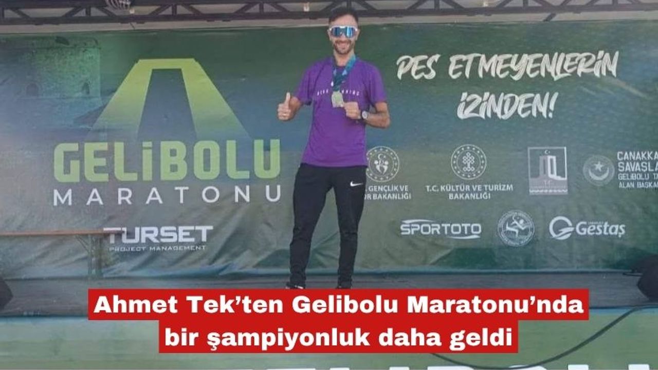 Tek, dün gerçekleşen Gelibolu Maratonu’nda Yarı Maraton (21 Kilometre)’da koşan Ahmet Tek, 1.500 kişinin katıldığı yarı maratonda rakiplerini geride bırakarak şampiyon oldu.