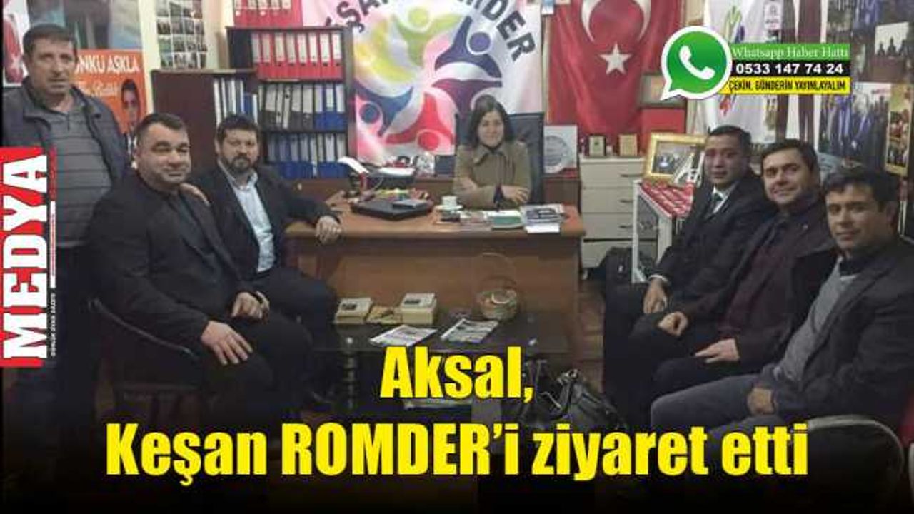 Savcı, ziyarette bulunan Aksal ve Kılınç’a teşekkür ederek derneklerinin takvimini hediye etti. Savcı, “Ziyarette bulunan AK Parti Edirne Milletvekili Sayın Fatma Aksal, AK Parti Keşan İlçe Başkanı Sayın Gürcan Kılınç’a ROMDER olarak duyduğumuz memnuniyeti dile getirir ve üyelerimiz adına Milletvekilimize ve ilçe başkanımıza teşekkür ederiz.” diye konuştu.