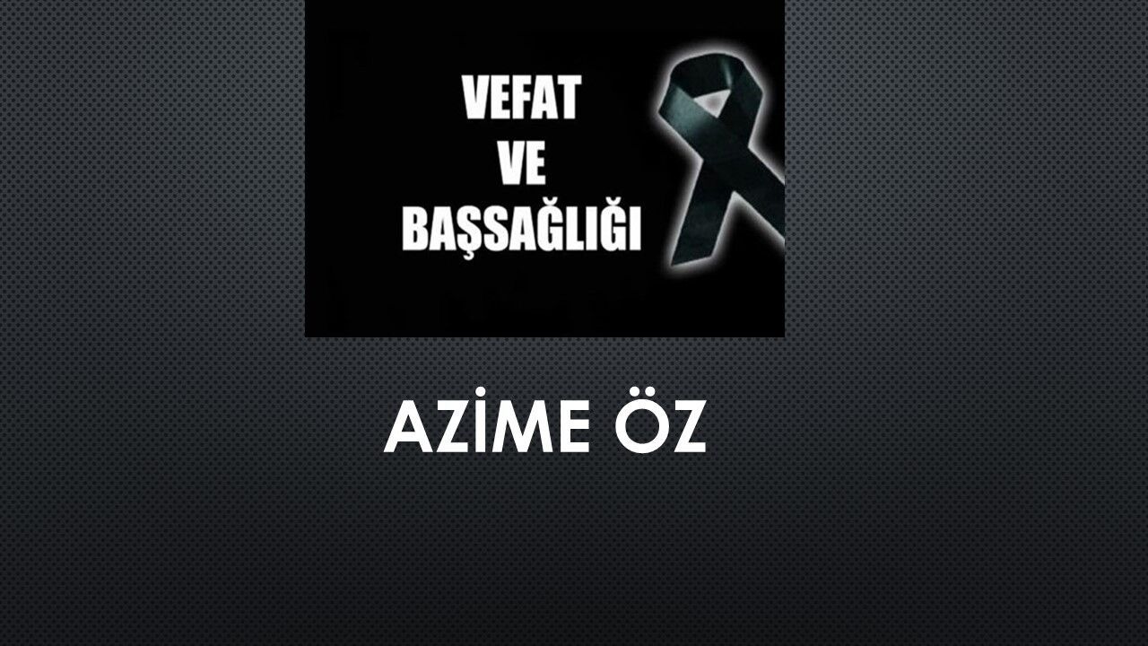 Büyük Cami Mahallesi eşrafından, merhum Zekai Öz‘ün eşi, merhum Mustafa, Tamer ve emekli öğretmen Cüneyt Öz‘ün anneleri, Fatma Öz ve emekli öğretmen Ayşe Öz‘ün kayınvalideleri, Ömer Sertaç, Serhat ve Gürdal Öz‘ün babaanneleri olan AZİME ÖZ vefat etti.