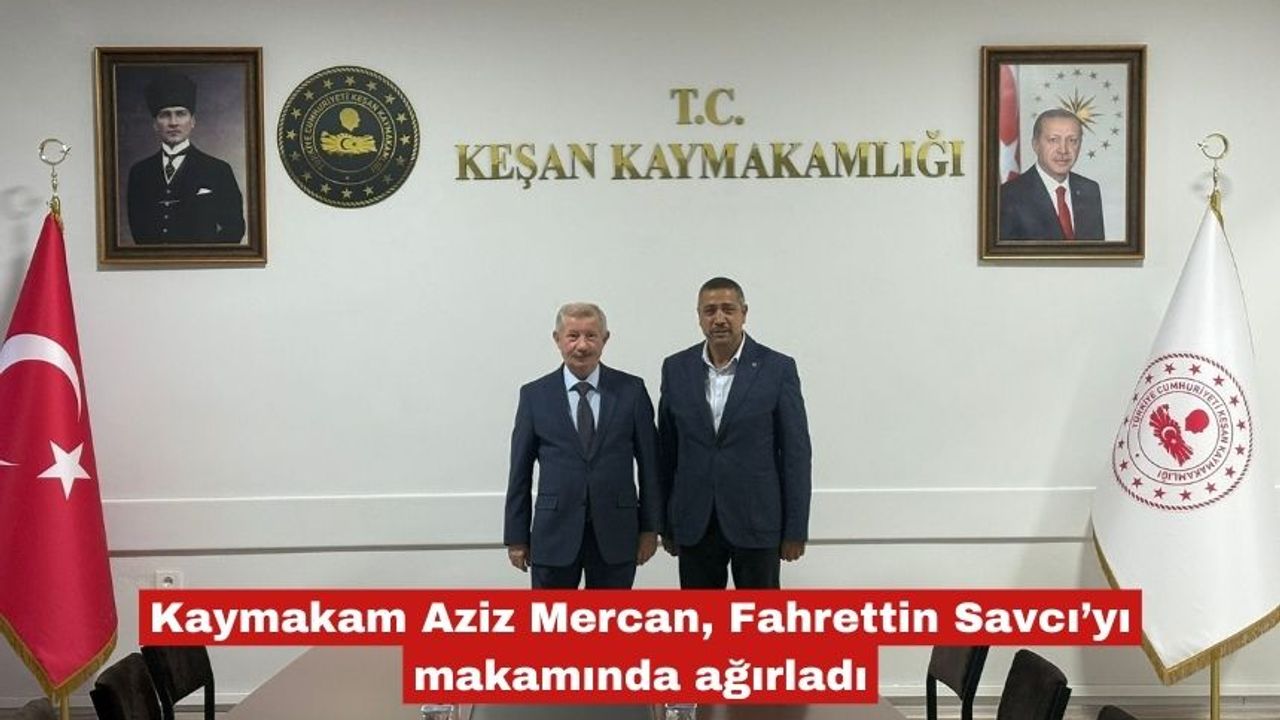 Keşan Kaymakamı Aziz Mercan, Türkiye Tüm Roman Dernekleri Konfederasyonu Genel Başkanı Fahrettin Savcı’yı makamında misafir etti.