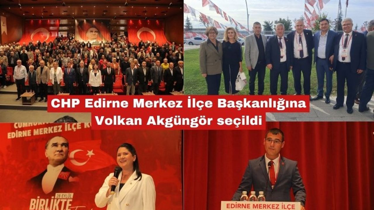 CHP Edirne Merkez İlçe Örgütü’nün 39. Olağan Genel Kurulu’nda tek liste ile seçime giren Volkan Akgüngör, oy birliği ile Merkez İlçe Başkanı oldu. Kongreye çok sayıda partili ve belediye başkanı katıldı.