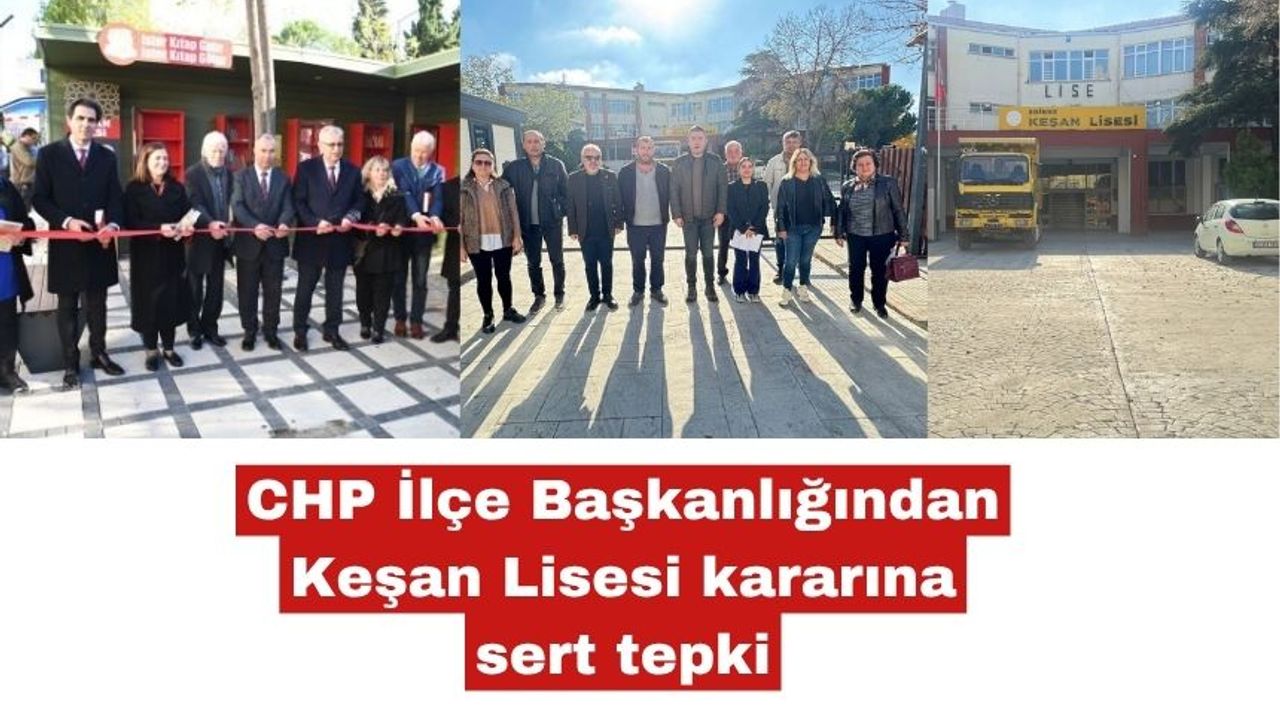 19 Kasım 2023 tarihinde Keşan Lisesi’nin kuruluşunun 55. yılı münasebetiyle düzenlenen programda Keşan Belediyesi ve Keşan İlçe Milli Eğitim Müdürlüğü işbirliğinde hazırlanan Keşan Lisesi Cadde Kütüphanesi’nin açılışı yapıldığını hatırlatılarak, “Dönemin AKP’li Belediye Başkanı, AKP Milletvekilinin katılımıyla düzenlenen programda açılış yapıldı. Yapılan düzenleme okulla beraber yıkılacak mı? Aynı düzenleme yıkılan Anafartalar İlkokulu’nun önüne de yapılmıştı. Bir yandan AKP belediyelere tasarruf tedbirleriyle iş yaptırmaz hale getirmek isterken bir yandan da bu israf düzeni devam ediyor” dedi.
