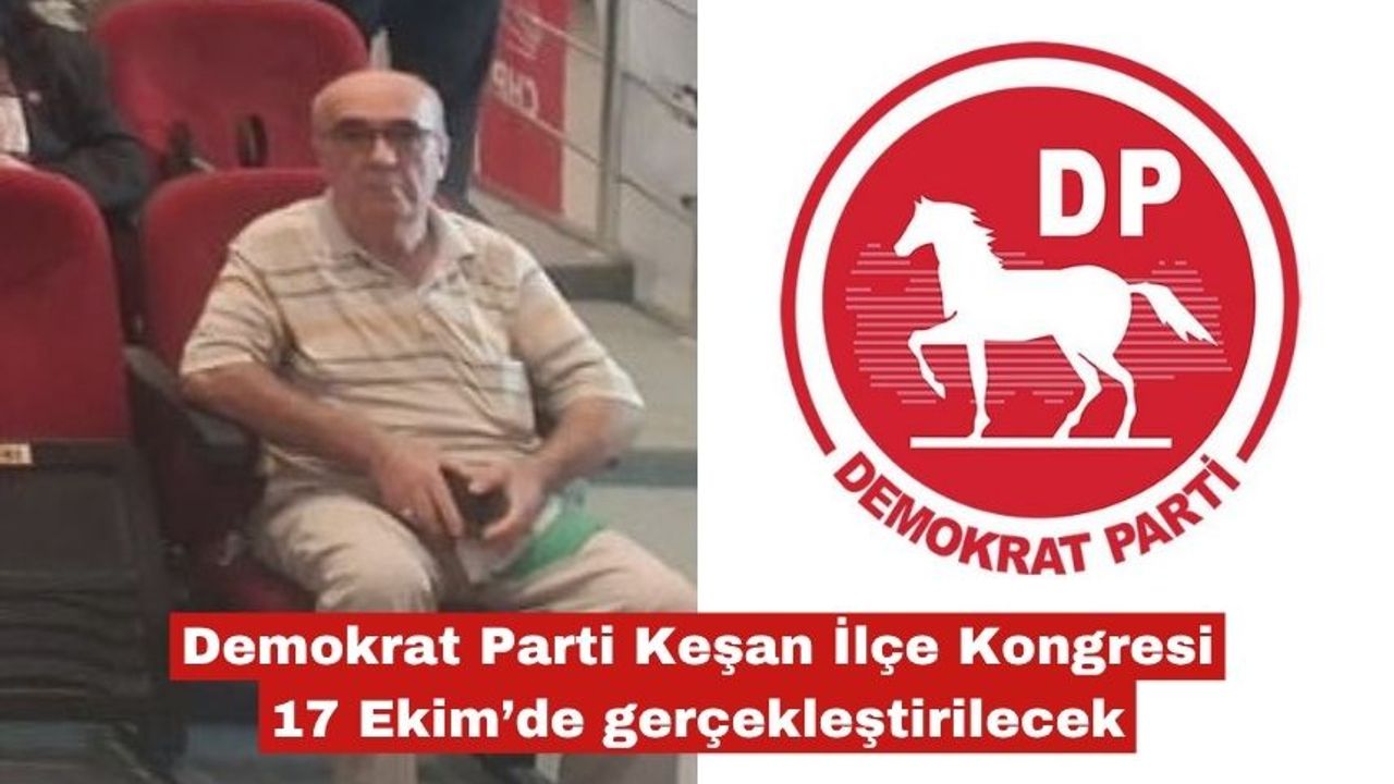 Demokrat Parti Keşan İlçe Başkanı Şaban Balkanlı, partisinin olağan kongresinin 17 Ekim 2025 Cuma günü saat 15.00’te Demokrat Parti İlçe Binası’nda yapılacağını açıkladı.