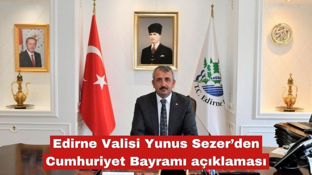 Edirne Valisi Yunus Sezer, Cumhuriyetin kuruluşunun 102. Yıldönümü nedeniyle yazılı bir açıklama yayınladı.
