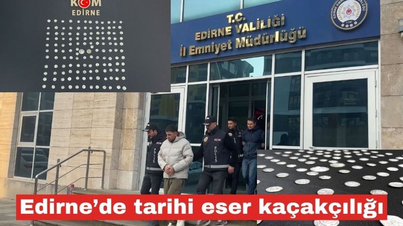 Edirne İl Emniyet Müdürlüğü KOM Şube Müdürlüğünce, 3 Aralık Çarşamba günü Uluslararası Tarihi eser Kaçakçılığına yönelik olarak yapılan operasyonda, uluslararası tarihi eser kaçakçılığına yönelik yaptıkları çalışmanın ardından şüphelilere yönelik operasyon düzenledi.