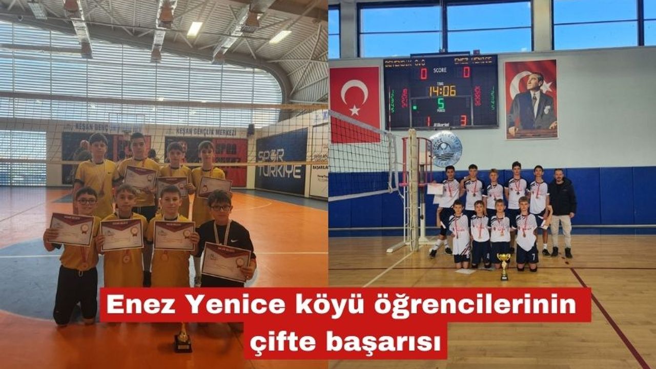 Enez Yenice köyü İlköğretim Okulu’nun öğrencileri 2 dalda Edirne Okulları arasında başarı kazandılar. Yıldız Erkek Voleybol takımı Edirne Birincisi olurken Küçük Erkekler Voeybol Takımı da Edirne ikincisi oldu.