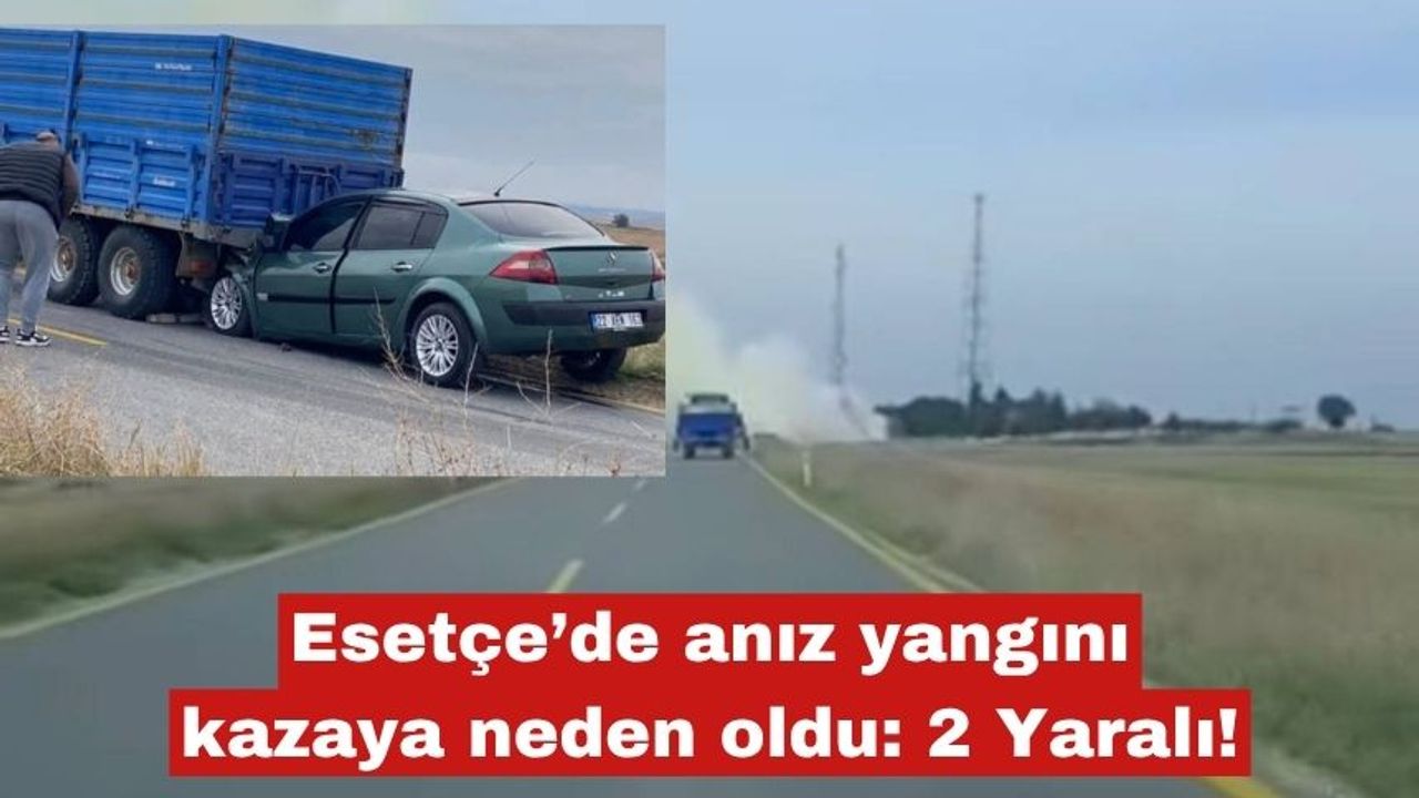 Esetçe beldesinde yakılan anız yangını, akşam saatlerinde ciddi bir kazaya neden oldu. Olay, dün saat 17.00 sıralarında Esetçe ile Aliçopehlivan köyleri arasındaki ana yol üzerinde meydana geldi.