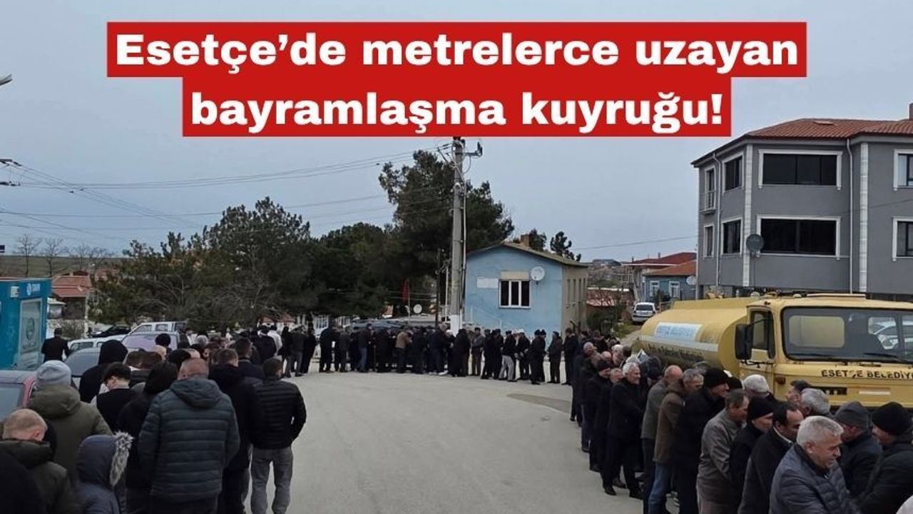Esetçe Belediye Başkanı Cemal Deniz, yerel yöneticiler ve her yaştan belde sakini, bayram namazının hemen ardından yan yana dizilerek uzun bir kuyruk oluşturdu. Metrelerce uzayan bu "bayramlaşma zinciri"nde dargınlar barıştı, büyüklerin elleri öpüldü ve bayramın huzuru tüm beldeye yayıldı.