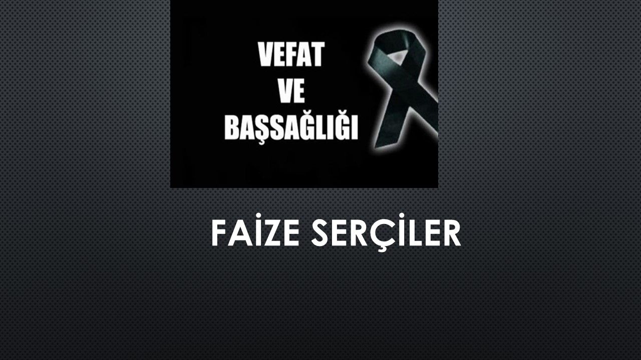 Merhum Fehim Serçiler’in eşi, Salim Serçiler, Ali Serçiler, merhum Fatma Serçiler, Elmas Enezli’nin anneleri, Aysel Serçiler, Ferziye Serçiler, Hasan Hüseyin Enezli’nin kayınvalideleri, Murat Serçiler, Pınar Kılıç ve Elif Baygül’ün babaanneleri, Gamze Enezli Baltan ve Özgür Enezli’nin anneanneleri olan FAİZE SERÇİLER vefat etti.