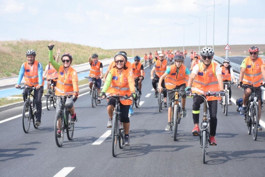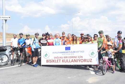 Edirne'de Avrupa Hareketlilik Haftası etkinlerinde bir araya gelen bisikletliler, hareketli yaşama dikkati çekmek için pedal çevirdi. DHA
