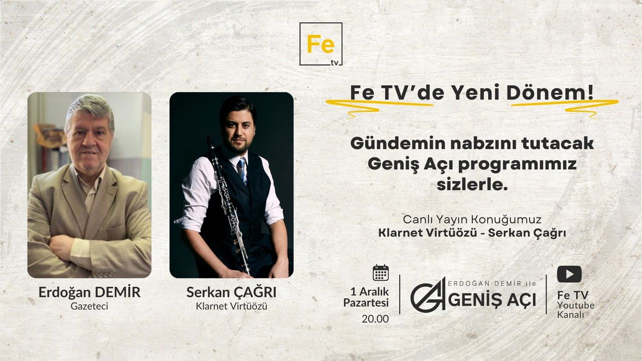 Fe TV’de pazartesi günleri canlı olarak yayınlanmaya başlanan ve Erdoğan Demir’in sunduğu Geniş Açı Programı’nın 1 Aralık Pazartesi günü yayınlanacak 3.bölümdeki konuğu Keşanlı klarnet virtiözü Serkan Çağrı olacak.