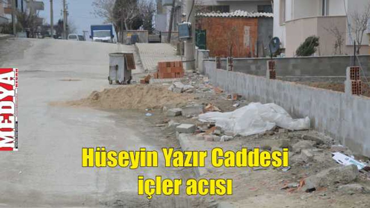 Keşan’ın eski belediye başkanlarından olan Hüseyin Yazır’ın isminin verildiği caddenin durumu içler acısı. Doğal gaz çalışmaları kapsamında kazılan cadde onarılmayı bekliyor. Kaldırıma atılan inşaat atıkları ise görüntü kirliliğine neden oluyor. Kaldırıma atılan kum, tuğla ve taşlar vatandaşların yürümesine izin vermiyor.