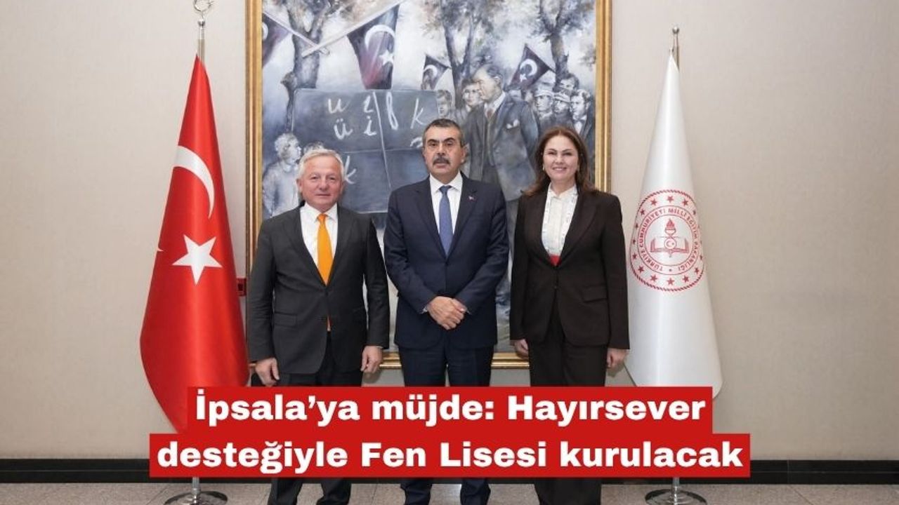 İpsala Belediye Başkanı Mehmet Kerman, ilçeye yeni bir eğitim yatırımı kazandırılacağını duyurdu. Kerman, AK Parti Edirne İl Başkanı Belgin İba ile Milli Eğitim Bakanı Yusuf Tekin’e gerçekleştirdiği ziyarette bir hayırsever iş insanı tarafından İpsala’ya Fen Lisesi kazandırılacağını ve projenin Milli Eğitim Bakanı Yusuf Tekin tarafından onaylandığını açıkladı.